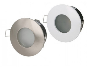 Spot LED blanc GU10 comprenant une collerettes étanche IP65 blanc ou argent, un culot GU10 et une ampoule GU10 5W 4000K (blanc naturel) ou 3000K (blanc chaud).